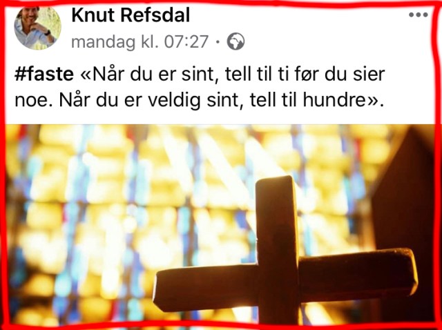 absoluttMetodist har tatt tilsynsprest Knuts fastetidsråd ad notam. Jeg har telt og telt – til hundre og tilbake. Likevel er jeg hellig vred, og vel så det. Hvorfor? Fordi den nattverden jeg har tenkt å […]