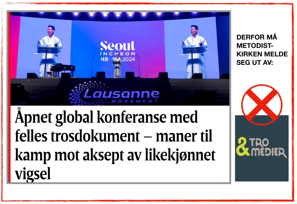 Slikt kan vår fornyede Metodistkirke ikke stille seg bak. absoluttMetodist erfarer at det til Årskonferansen 2025 heldigvis vil foreligge et forslag om at Metodistkirken i Norge snarest avvikler sitt medeier- og medlemskap i Tro&Medier, og andre organisasjoner som forplikter seg på Lausannepakten.