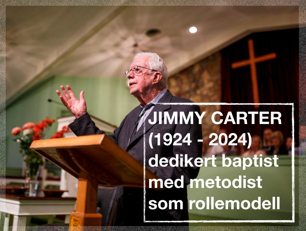absoluttMetodist har stor sans og ikke minst respekt for Jimmy Carter som døde i går. Vi skal slett ikke rokke ved hans livslange overbevisning som baptist, men Carter har selv fortalt at han som ung ofte oppsøkte St. Mark African Methodist Episcopal Church for å være sammen med sine afroamerikanske venner. Carter kan også takke metodistkirken for sin kjære Rosalynn som han var gift med i hele 76 år!
